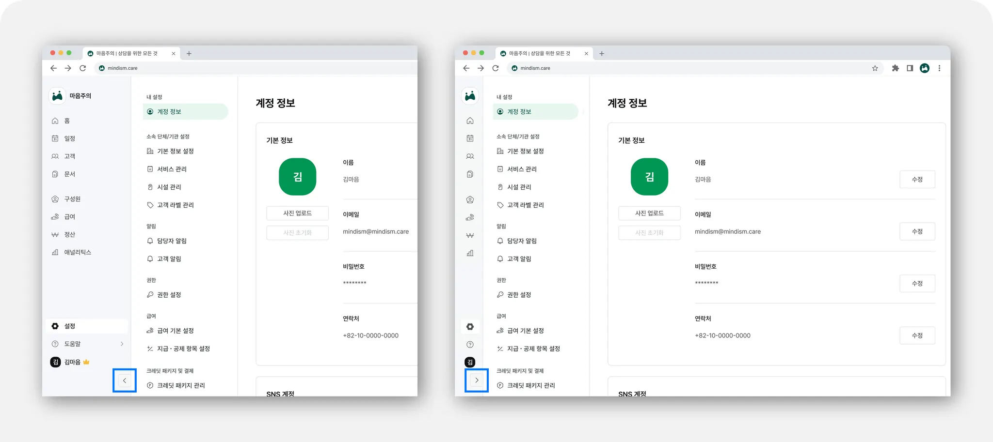 메인 메뉴를 접어 SNB 항목 제목만 보고 싶으시다면 메인 메뉴 맨 하단으로 커서를 이동해 보세요. 커서를 올리면 나타나는 화살표를 클릭하여 메인 메뉴를 접거나 펼칠 수 있습니다