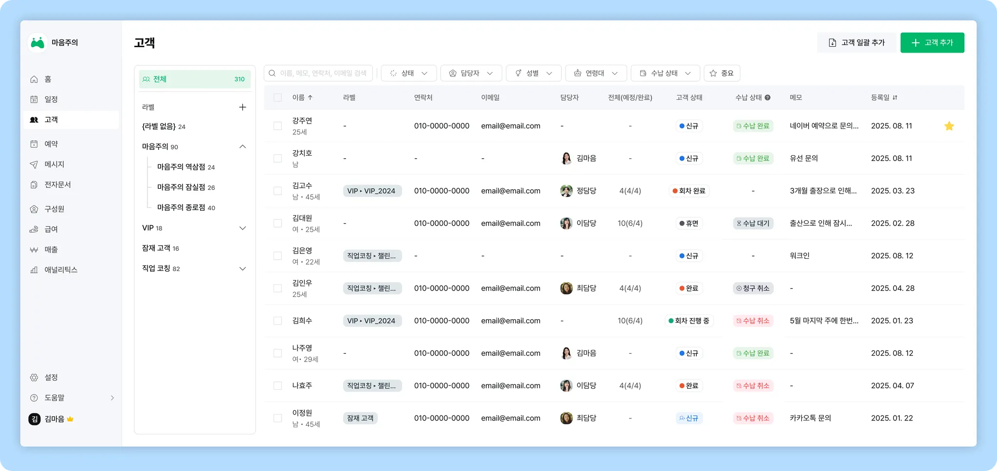 고객 관리를 위한 모든 기능을 한눈에 확인하고 관리할 수 있어요.