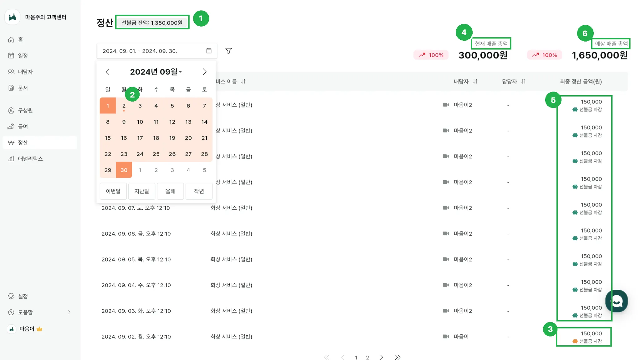모든 고객의 선불금 잔액을 확인하고, 매출을 구분하여 확인해보세요