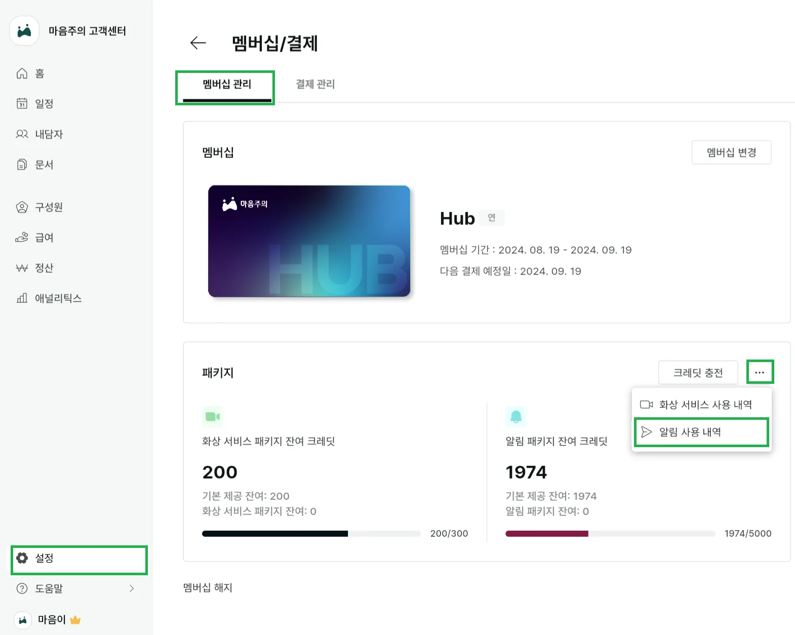 현재 보내신 문자와 알림은 [설정] → [멤버십/결제] → [멤버십 관리] → [더보기] → [알림 사용 내역]에서 확인하시고 복사하실 수 있어요