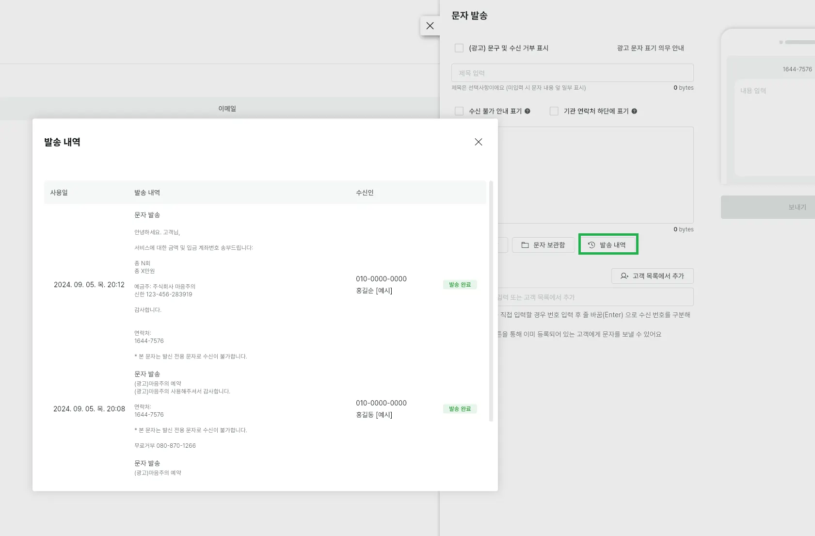 나만의 문자 템플릿 사용하기, 발송 내역 확인 기능